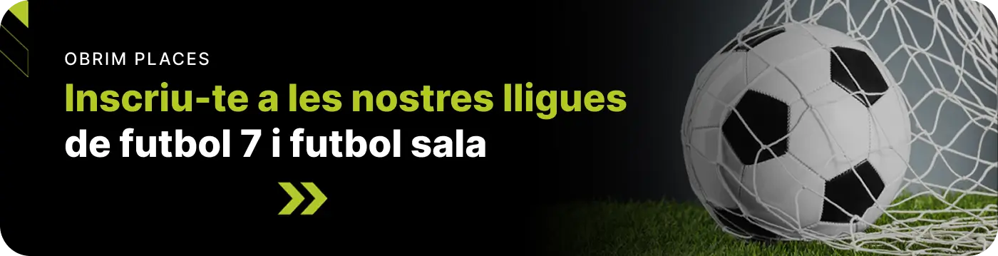 Apunta’t a les nostres lligues femenines i masculines de futbol sala o futbol 7, o gaudeix del lloguer de camps i pistes de pàdel amb els teus amics.